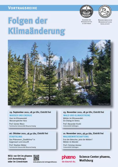 Für die neue Vortragsreihe haben die Braunschweigische Wissenschaftliche Gesellschaft und die Akademie der Wissenschaften zu Göttingen vier Referenten aus unterschiedlichen Fachrichtungen gewonnen, die zu den Folgen des Klimawandels forschen.